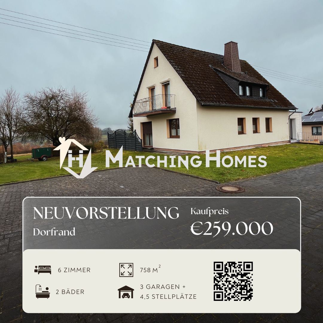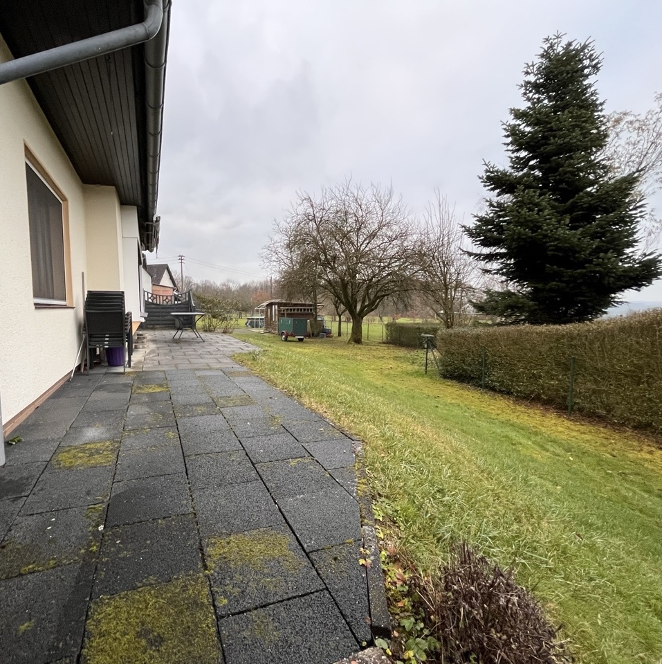 Zum Verkauf steht ein ‘Einfamilienhaus mit Einliegerwohnung’ am Dorfrand von Weyerbusch. Die Immobilie besteht aus zwei gleich geschnittenen Wohneinheiten im Erd- und Dachgeschoss, die sich nur aufgrund von Dachschrägen leicht in der Wohnfläche unterscheiden.
