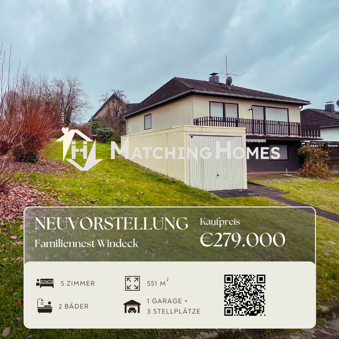 Das Einfamilienhaus liegt im beliebten Windecker Ortsteil Herchen, einer familienfreundlichen Lage im Rhein-Sieg-Kreis, in der Naturverbundenheit und Alltagstauglichkeit perfekt zusammenspielen.