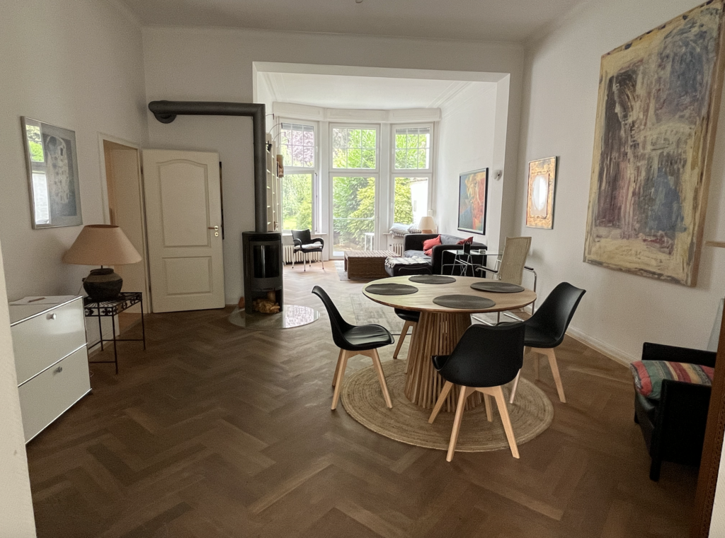 Sowohl die Terrasse als auch der Garten stehen ausschließlich der Mietpartei im Erdgeschoss zur Verfügung. Die Wohnung ist vollständig möbliert und eingerichtet. Viele Möbel wurden im Juli 2023 erneuert. Bei Übergabe der Wohnung sind alle Textilien (Bettwäsche, Handtücher) gereinigt und alle Zimmer geputzt, so dass die Wohnung sofort bezogen werden kann. Beim Auszug ist die Wohnung im identischen Zustand zurückzugeben oder eine Endreinigungspauschale i.H.v. 300€ zu zahlen. Das Mobiliar wird vor Einzug teilweise noch erneuert.