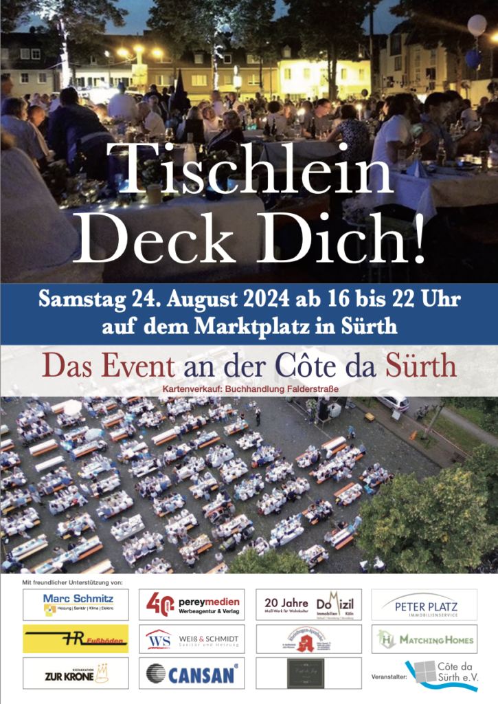 Am 24.8.24 fand erneut das traditionelle Veedels Fest in Köln Sürth in weiß/ blauen Farben statt. Leckere Speisen, kalte Getränke, coole Beats und nette Sürther kamen zusammen und feierten bis in die Abendstunden: https://cote-da-suerth.koeln
